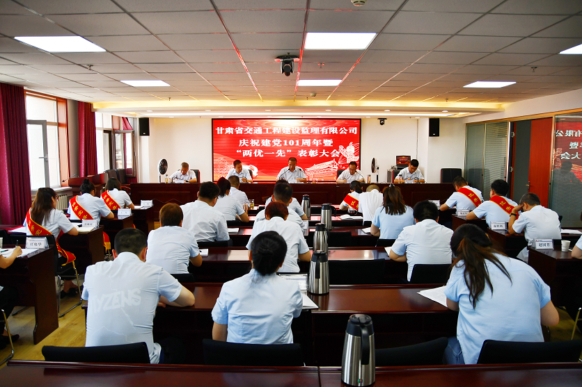 6月30日,甘肃省交通工程建设监理有限责任公司召开庆祝建党101周年暨“两优一先”表彰大会。交通监理公司领导班子成员,机关及子公司全体党员、中层干部,受表彰的先进集体和优秀个人代表共计30余人在主会场参加表彰大会,各项目机构在分会场参会。会议由交通监理公司党委副书记、总经理丁峰主持。
